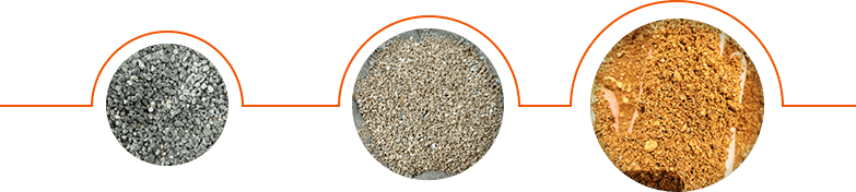 原料經(jīng)由顎式破碎機進行初級破碎,再次經(jīng)過反擊式破碎機進行中、細破碎之后經(jīng)由圓振動篩開始篩選,粒度不符合要求的需再次經(jīng)過中碎處理,使物料粒度符合制砂機進料要求,在制砂處理,后進行篩分,不滿足成品粒度要求,需要返回制砂機再加工,為提高制砂成品粒型,再由洗砂機清洗、除雜,將石粉含量控制在合格范圍內(nèi),即可獲得粒型好、級配合理機制砂成品。